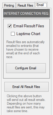 Result emails are automatically sent at the end of each race to all entrants of the race that have be configured to receive email (as described above).